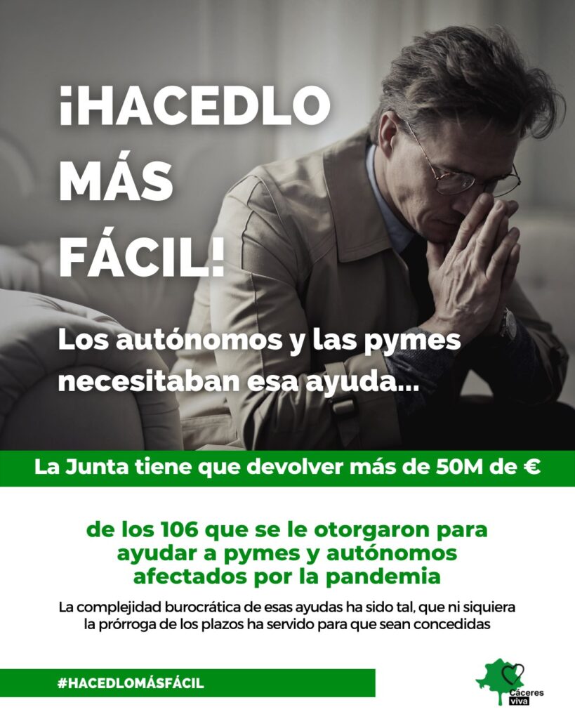 Extremadura tendrá que devolver el 50% de las ayudas para pymes y autónomos, ¡por no poder repartirlas! ¡Increíble!
